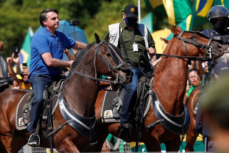 BRASILIA (Reuters) – El presidente brasileño, Jair Bolsonaro, se unió a caballo a una manifestación el domingo, cuando sus partidarios instaron al cierre del Supremo Tribunal Federal por investigar al líder de derecha, mientras uno de sus jueces comparó los riesgos para la democracia de Brasil con la Alemania de Hitler.