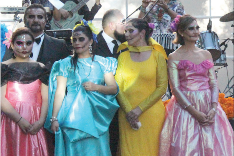 A margen de la Alameda, se desarrolló la pasarela Viva la Catrina, con diseños de Bobe D’león, quien explicó el significado de cada uno de los vestuarios, pues se inspiró en la naturaleza, complementando con el toque de fiesta, el colorido singular de México. Una representación del funeral prehispánico y danza autóctonas, dieciséis atuendos y la participación del grupo Luna y Agua, además el grupo Solovino, quienes brindaron un grato concierto de música ancestral. Fue una agradable tarde que la sociedad queretana disfrutó previó al Día de Todos Santos y Día de Muertos. Sin duda un mosaico cultural que nos da identidad.
