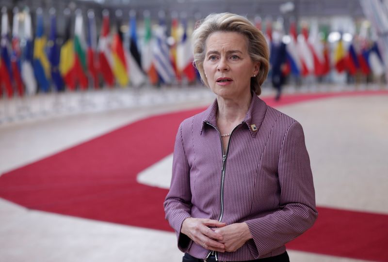 BRUSELAS, 15 oct (Reuters) – La cumbre de los líderes de la Unión Europea en Bruselas continuó como estaba previsto el jueves después de que Ursula von der Leyen, la jefa del ejecutivo del bloque, se ausentara para entrar en cuarentena porque había estado en contacto con una persona que dio positivo en la prueba de COVID-19.