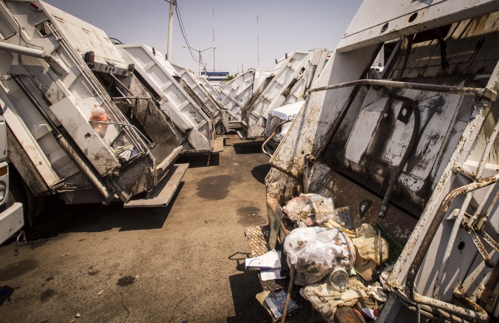 Querétaro, Querétaro. 10 de abril de 2016.- Después de la advertencia del uso de la fuerza pública por parte del secretario de administración, Manuel Velázquez Pegueros; los trabajadores de recolección de basura fueron forzados a dejar salir los camiones de recolección que habían sido retenidos la madrugada de este domingo, como parte de un paro de labores debido a la incertidumbre laboral tras la concesión del servicio de recolección por parte del municipio al empresa Red Recolectora S.A. de C.V.