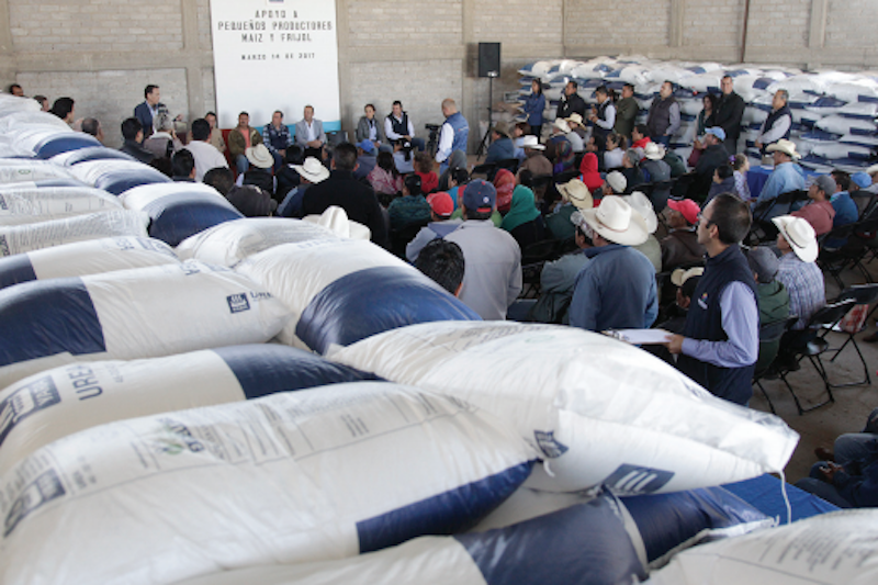 Con una inversión de un millón 625 mil 446 pesos, se otorgaron mil 832 sacos de fertilizante Urea, mil 832 sacos de fertilizante superfosfato de calcio simple, 33 sacos de semilla de frijol de la variedad pinto saltillo y 89 sacos de semilla de frijol de la variedad flor de junio.