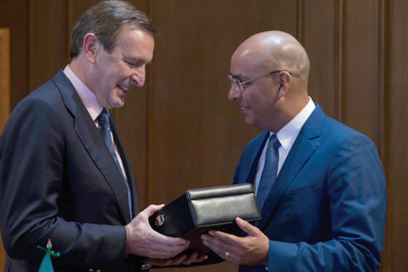 El Presidente Municipal de Querétaro, Marcos Aguilar Vega, recibió en sesión solemne de Cabildo a Luis Fernández, Cid de las Alas Pumariño, Embajador Extraordinario y Plenipotenciario del reino de España en los Estados Unidos Mexicanos, y dentro del programa de hermanamiento de España y Querétaro, llevó a cabo esta entrega.