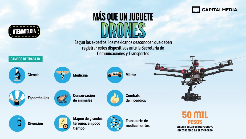 “Aeronáutica Civil es quien regula cualquier tipo de objeto que vuele en el espacio aéreo mexicano, ellos poseen la circular obligatoria, la 2310R3, que da todos y cada uno de los requisitos a cumplir para poder operar tu aeronave”, detalló.