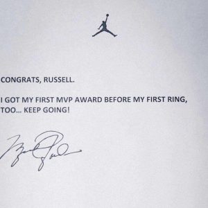 Este fue el mensaje que mandó MJ, como dueño de la marca deportiva Jordan, que patrocina al base del Thunder. La firma mandó además de la carta, un paquete de regalo para el más valioso de la NBA.