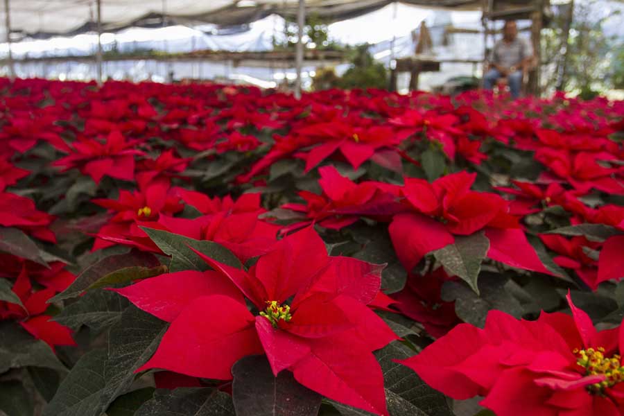 Aunque florea en diciembre, en los invernaderos adelantan los tiempos para lograr su pigmentación y floreado desde octubre, cuando inicia su comercialización y se induce el color a través del fotoperiodo y con plásticos negros cubren el lugar para “engañar a la planta haciendo parecer días más cortos”; el precio de cada una oscila entre los 15 y 50 pesos de acuerdo al tamaño.