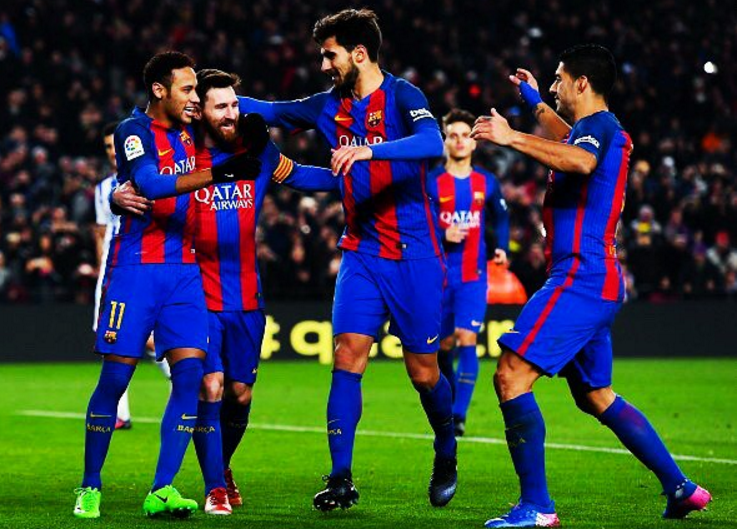 El Futbol Club Barcelona consiguió su pase a la semifinal de la Copa del Rey, luego de golear en el Estadio Camp Nou por 5-2 (6-2 global) a la Real Sociedad, equipo donde milita el delantero mexicano Carlos Vela.