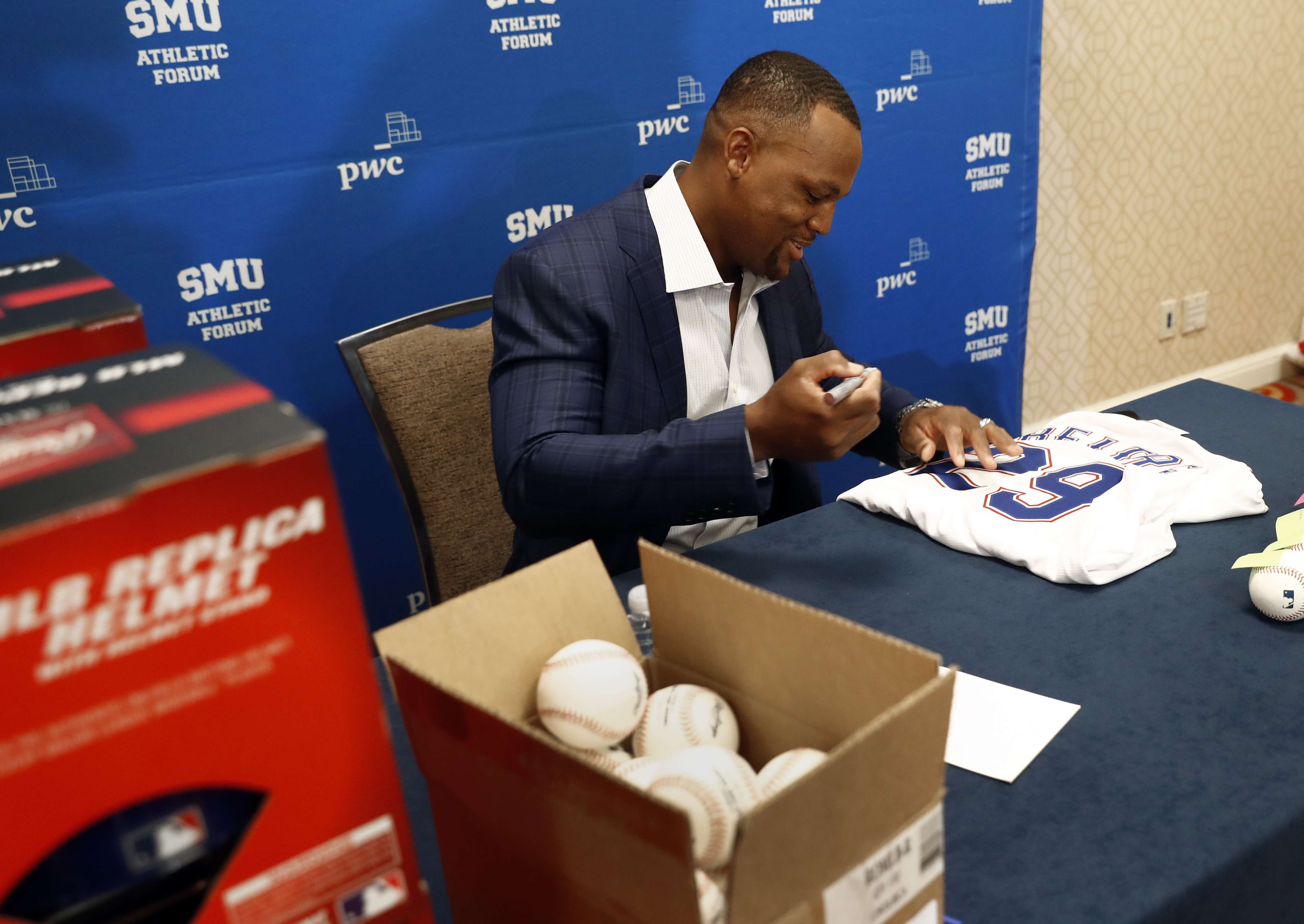La aparición del dominicano en el Foro Atlético de la SMU (siglas de la Universidad Metodista del Sur) se presentó casi dos semanas y media antes de que vuelva a Texas, cuando los Rangers retiren su jersey con el número 29, el próximo 8 de junio.