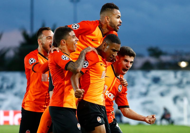 El centrocampista brasileño Tete abrió el marcador para el Shakhtar a los 29 minutos y el defensor del Madrid Raphael Varane amplió la ventaja del visitante a los 33 con un gol en propia puerta. El delantero israelí Manor Solomon puso el 3-0 a los 42.