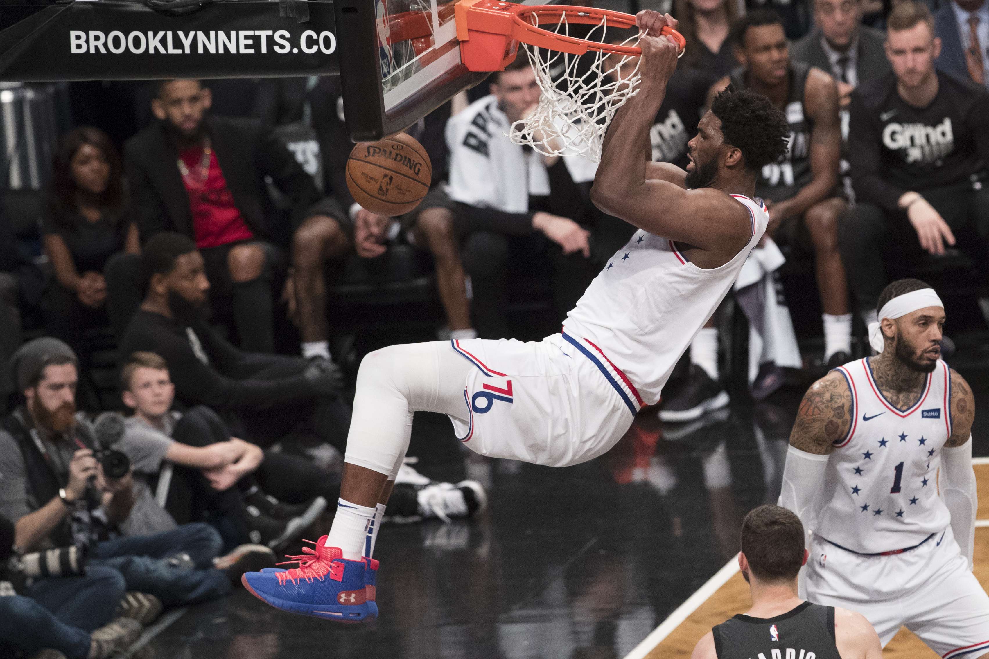 Embiid sumó 31 puntos y 16 rebotes, además de pasar el balón para que Mike Scott lograra el triple de la ventaja a 18 segundos de que concluyera el encuentro que Filadelfia ganó el sábado 112-108 a los Nets de Brooklyn.