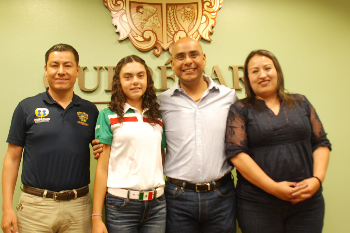 “Estamos muy orgullosos de tus logros, de recibirte y agradecidos de que compartas con nosotros todo lo que has construido a tu edad, aprovecha ese don que Dios te dio para que continúes alcanzando las metas que te propongas”, le dijo el Alcalde Marcos Aguilar Vega a la destacada deportista queretana María Alejandra Ferrer Alvarez, actual Campeona Mundial de Golf Infantil.