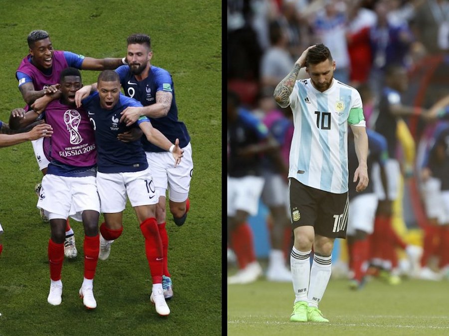 La selección de Francia eliminó a su similar de Argentina en los octavos de final de la Copa Mundial de Rusia 2018 tras derrotarlos 4-3.