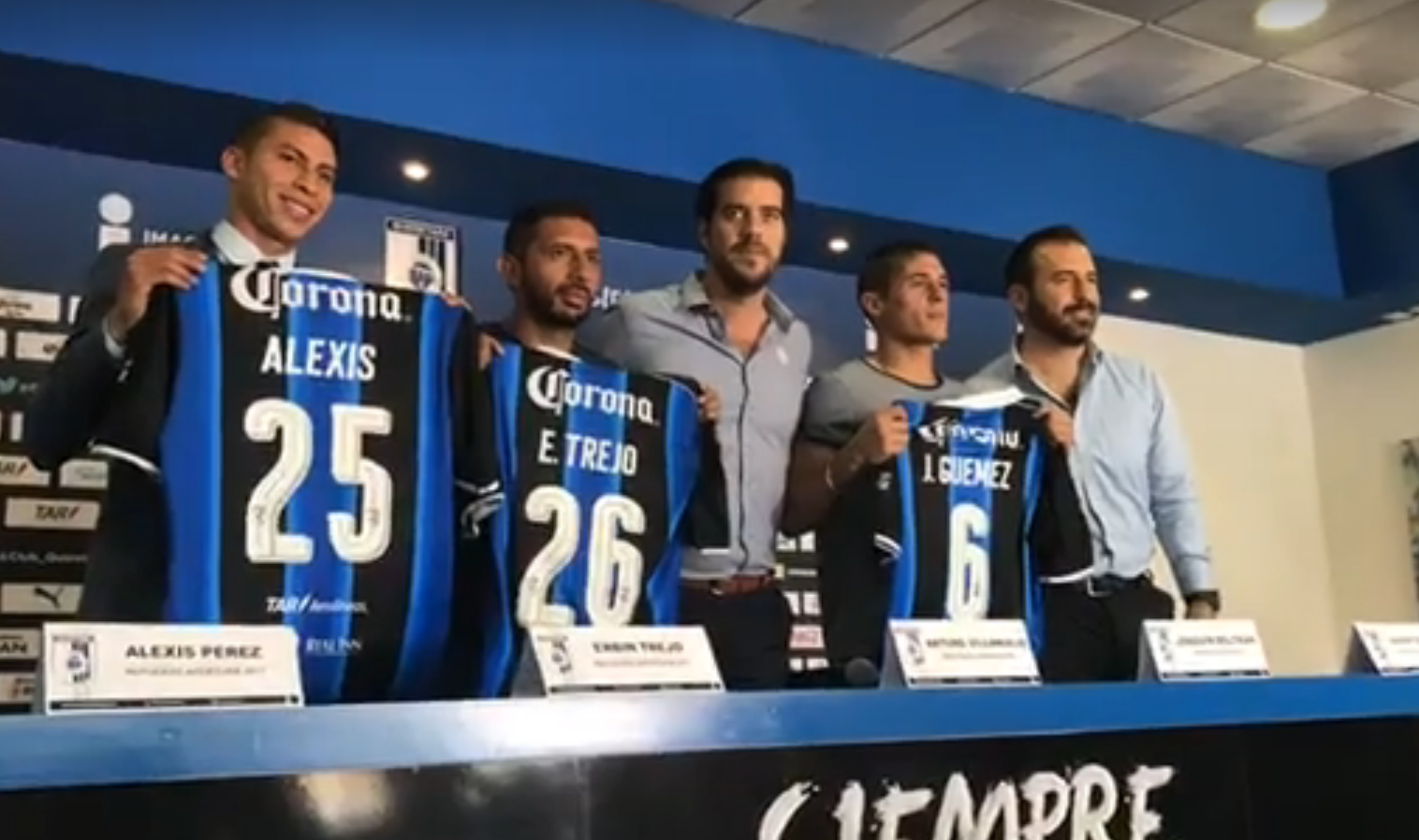 El conjunto de Gallos Blancos de Querétaro presentó este miércoles a sus tres refuerzos para enfrentar el torneo de Apertura 2017 de la Liga MX y se dio a conocer que además se busca uno más de origen sudamericano.