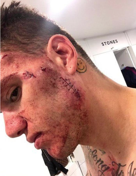 A través de redes sociales circuló la imagen del rostro del portero del Manchester City después del partido, donde se observó que requirió de al menos 8 puntadas en diversos puntos del costado izquierdo de su cara, misma que presentaba inflamación y cortes así como restos de sangre producto de la intensa hemorragia proveniente de sus profundas heridas.