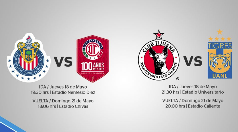 Las semifinales del Clausura 2017 ya se encuentran a la vuelta de la esquina, en esta instancia de la “Fiesta Grande” se verán las caras Toluca en contra de las Chivas del Guadalajara, así como las escuadras de Xolos y Tigres.