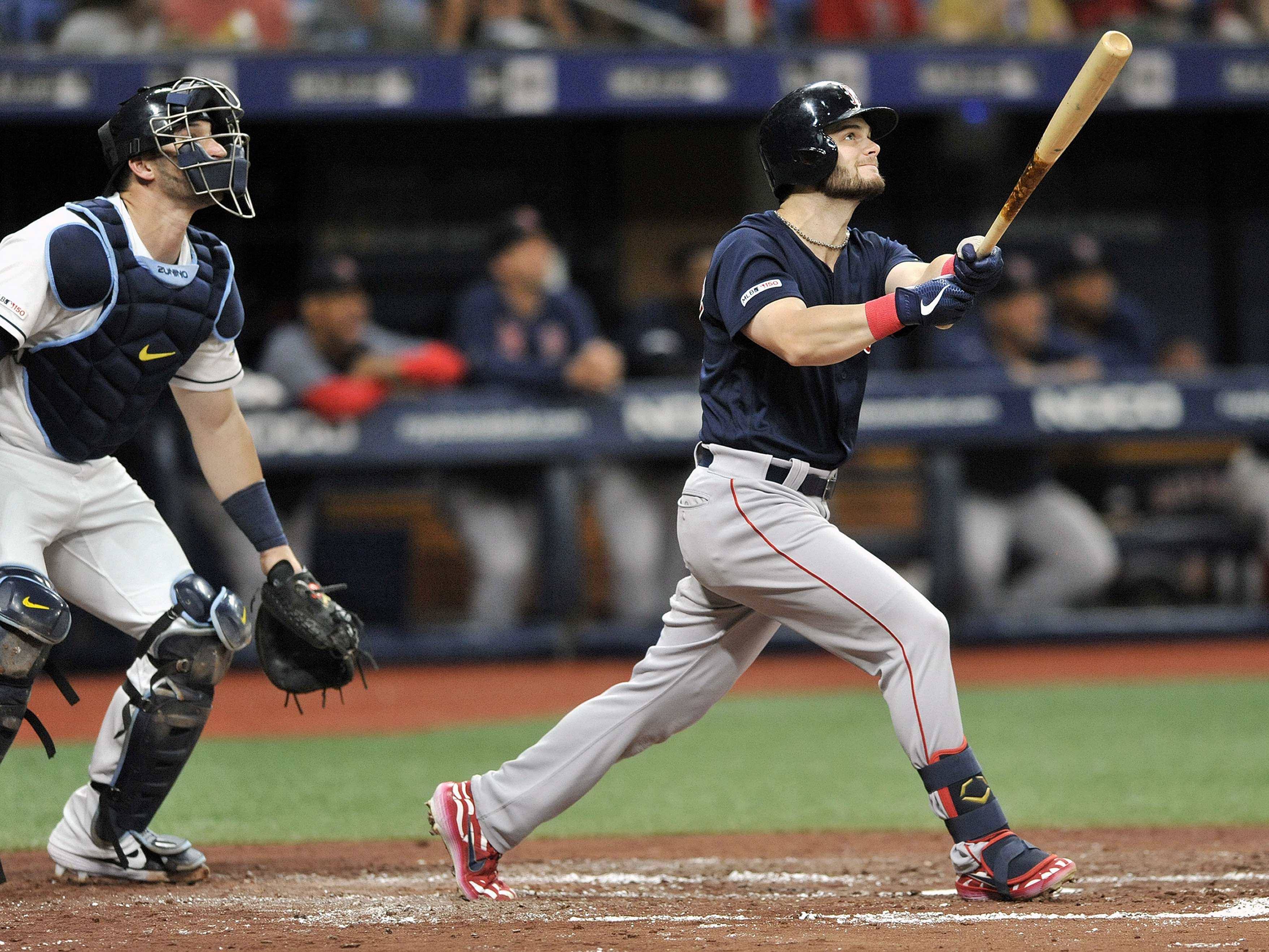Martínez, Andrew Benintendi y Sam Travis pegaron jonrón en el tercer episodio, cuando los Medias Rojas anotaron siete veces contra el exprospecto de Boston, Jalen Beeks (5-1), quien perdió por primera vez desde que fue enviado a los Rays en un canje por Eovaldi el verano anterior. El bambinazo de tres anotaciones de Martínez fue el golpe más grande.
