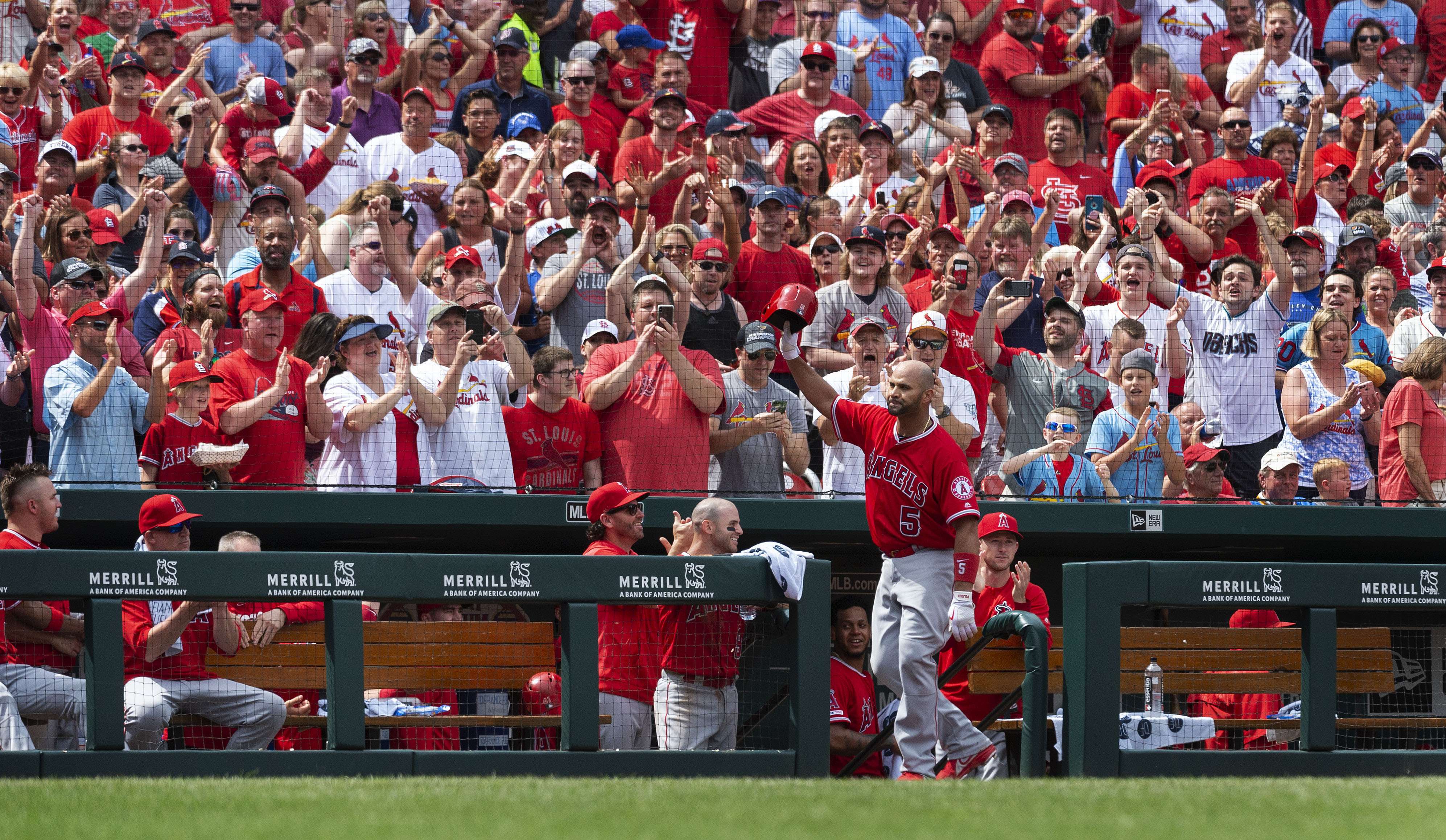 Pujols fue aclamado por los fanáticos que siguen adorándolo en el Busch Stadium, tras conectar un jonrón ante los Cardenales. Su compatriota dominicano Marcell Ozuna consiguió también un cuadrangular y San Luis se impuso el sábado 4-2 a Los Ángeles.