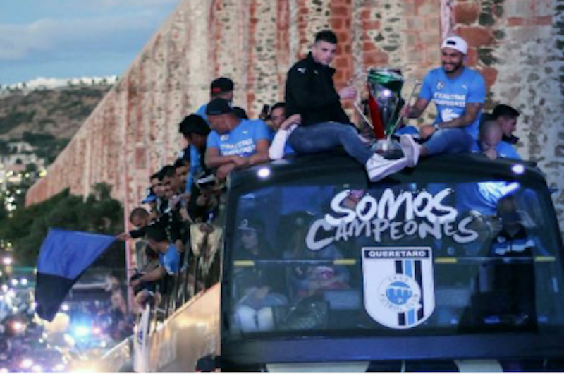 El equipo de Gallos festejó en grande su campeonato en la Copa Mx y salió en las principales calles para celebrar con su público, el recorrido comenzó en el estadio Corregidora para tomar posteriormente Bernardo Quintana hasta los Arcos, de ahí tomaron Zaragoza hasta Ezequiel Montes para retornar y tomar Constituyentes hasta Av. Cimatario y subir por Luis M V. Monroy y regresar al Corregidora, durante el recorrido se podía escuchar ¡Campeón, campeón, campeón hay uno sólo se llama Gallos Blancos!.