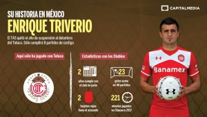 Por lo que informó: “Se sanciona a Enrique Luis Triverio con una suspensión de ocho partidos y la imposición de una multa de mil UMAs (Unidad de Medida y Actualización)”, apropiadamente 75 mil 490 pesos.