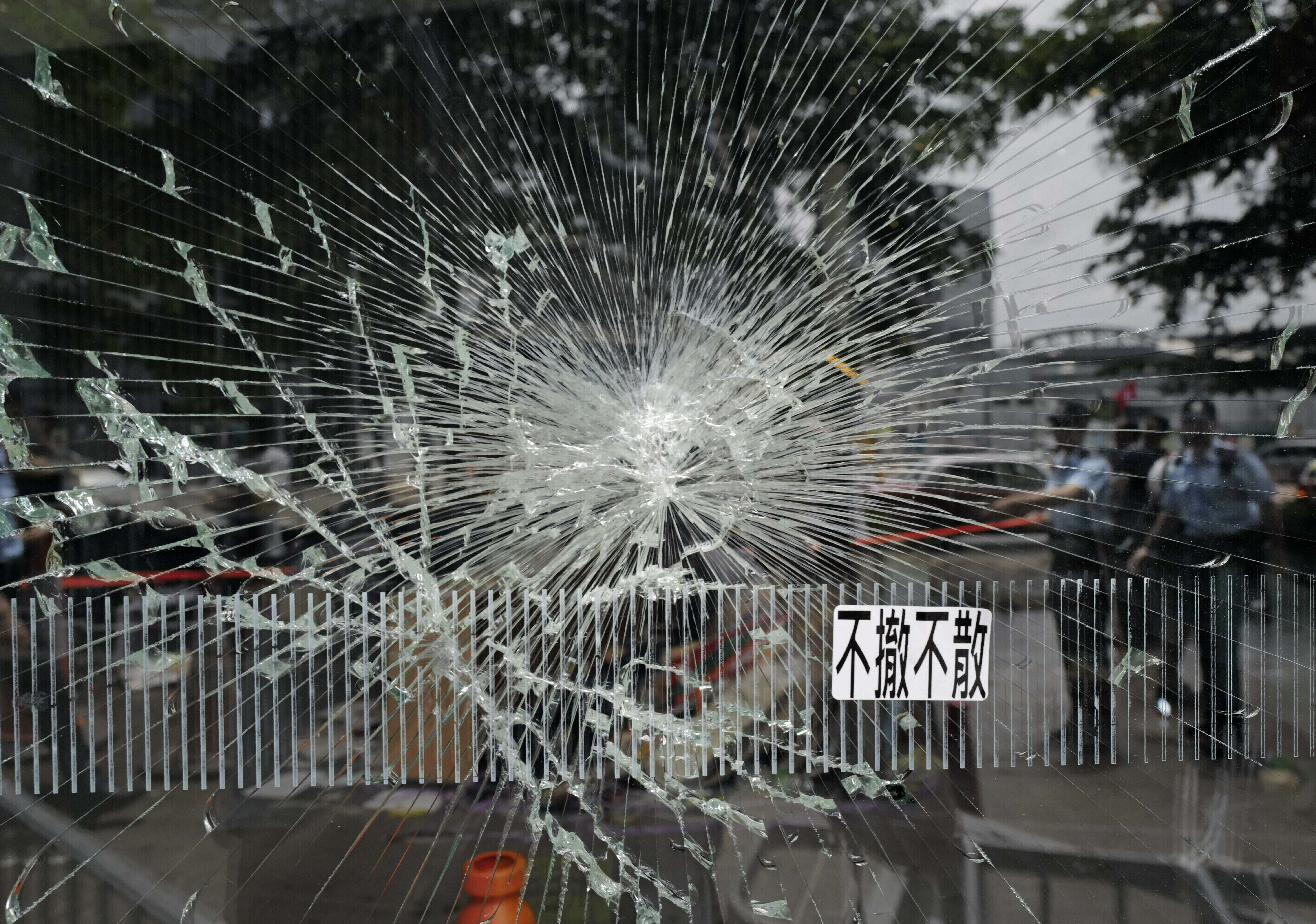 El gobierno chino condenó los actos en los que varios cientos de manifestantes rompieron vidrios y barreras de acero para entrar al edificio el lunes en la noche, señaló el vocero del Ministerio de Exteriores, Geng Shuang.