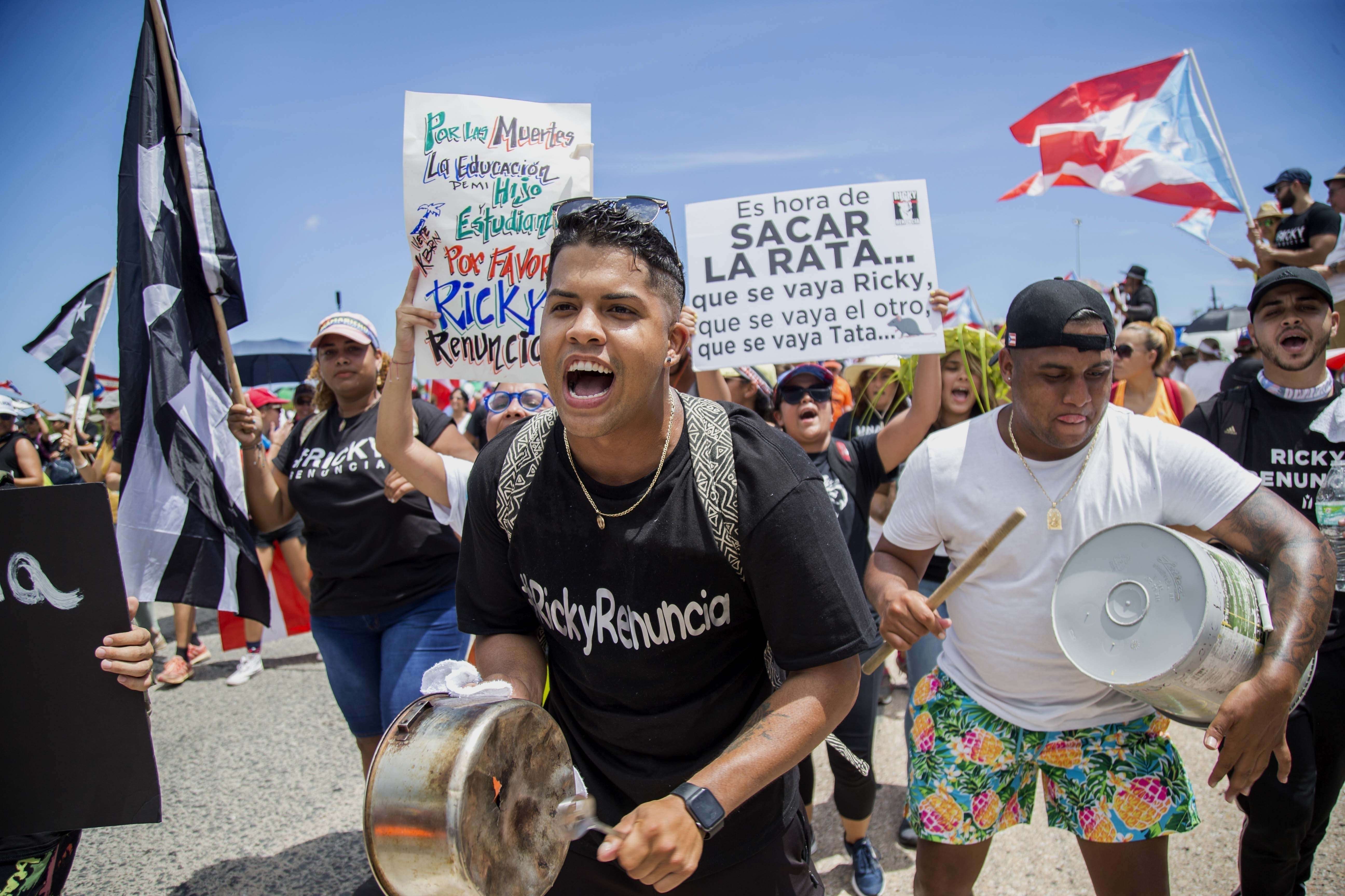 La manifestación del lunes fue la más multitudinaria en la isla desde que los puertorriqueños salieron a la calle para poner fin a las maniobras de la Marina de Estados Unidos en la Isla de Vieques hace más de 15 años. Se esperan más protestas para esta semana.