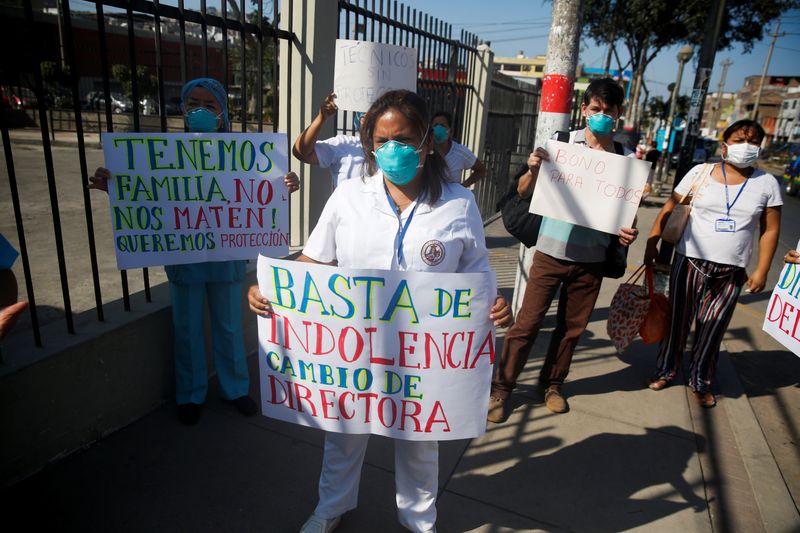 LIMA, 22 abr (Reuters) – Muertos en pasillos, máscarillas reutilizadas y protestas de enfermeras por la falta de equipos de protección muestran el impacto del coronavirus en el desbordado sistema sanitario de Perú, que tiene la segunda cifra más alta de la enfermedad en América Latina.