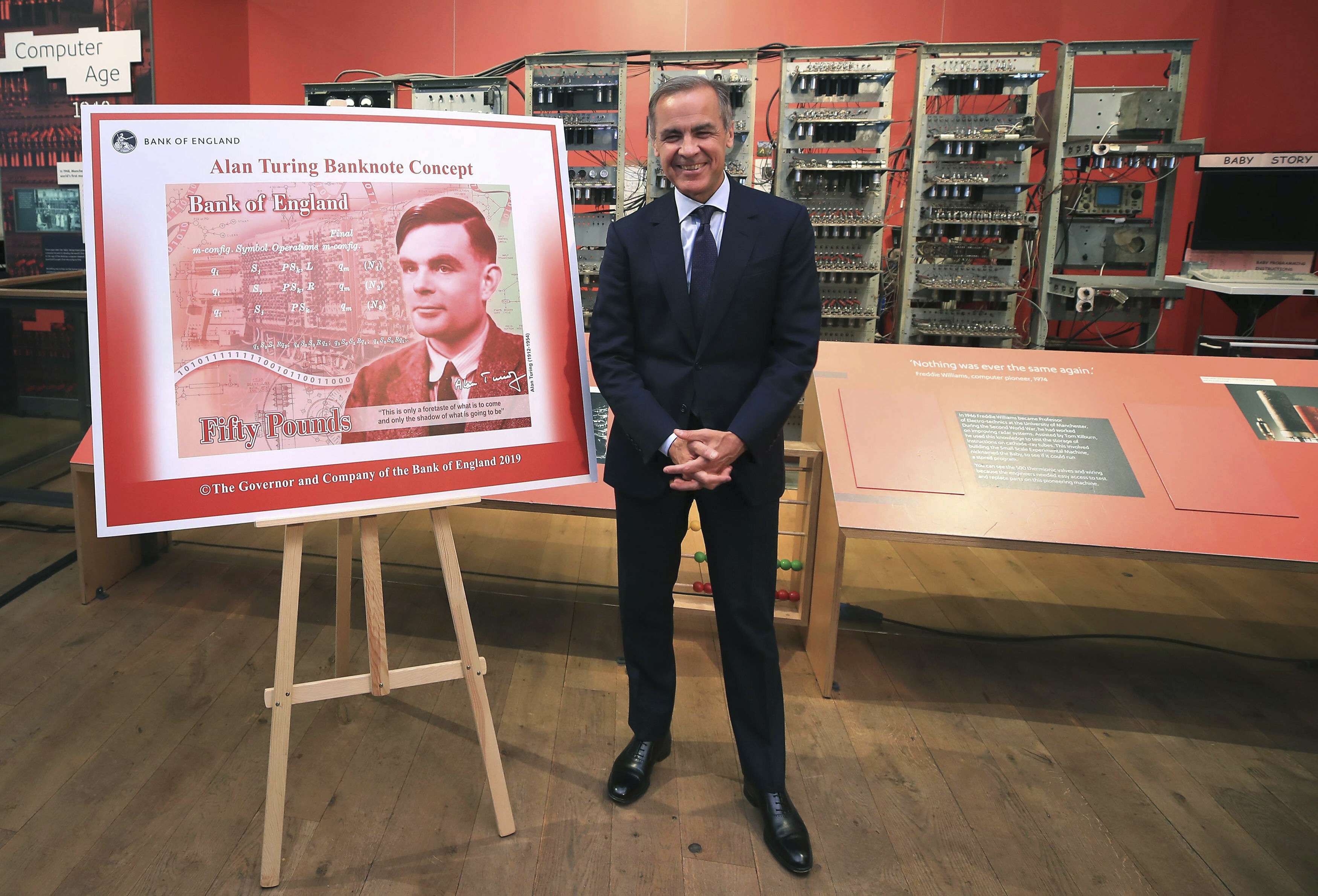 Turing, que hizo un trabajo innovador en la computación e inteligencia artificial, fue “un gigante sobre cuyos hombros se alzan muchos ahora”, indicó el gobernador de la institución, Mark Carney.