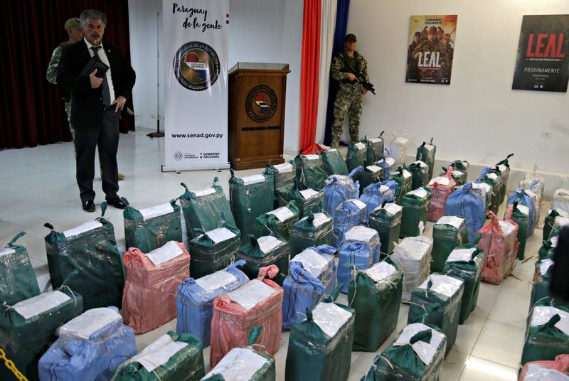 ASUNCIÓN, 20 oct (Reuters) – La policía paraguaya dijo el martes que decomisó un volumen récord de 2,3 toneladas de cocaína en un puerto privado cerca de Asunción, escondidas en un cargamento de carbón vegetal que tenía como destino Israel.