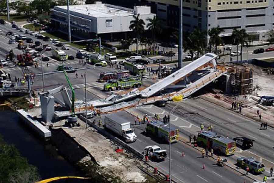 Las autoridades de Miami elevaron a seis el número de fallecidos tras el desplome de un puente peatonal, mientras se mantienen realizando estudios forenses para identificarlos.