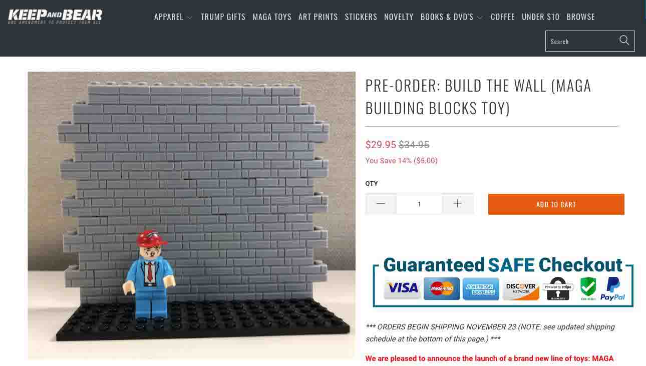 Por tan solo 29.95 dólares, la tienda en línea ‘keepandbear.com’ lanzó la preventa de un kit de 101 piezas para construir un muro, en referencia a la propuesta del presidente Donald Trump para reforzar la seguridad en la frontera sur de Estados Unidos.