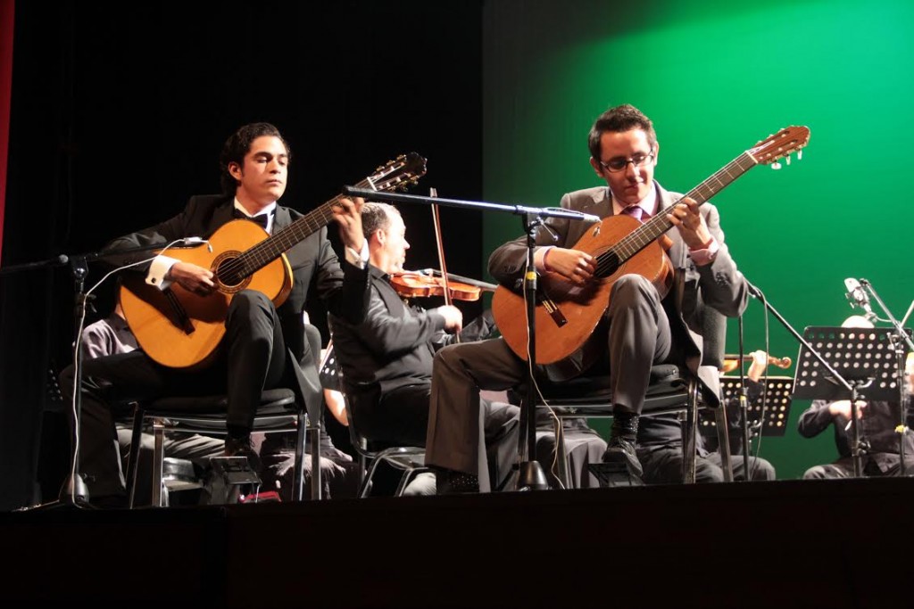 El programa estuvo conformado por cuatro piezas. En “Concierto para 2 mandolinas RV-532 en Sol Mayor, versión para 2 guitarras” -de Antonio Vivaldi-, los guitarristas fueron Luis Eduardo Núñez Pantoja y Arturo Olmos Ybarra, pertenecientes a la Licenciatura en Música.