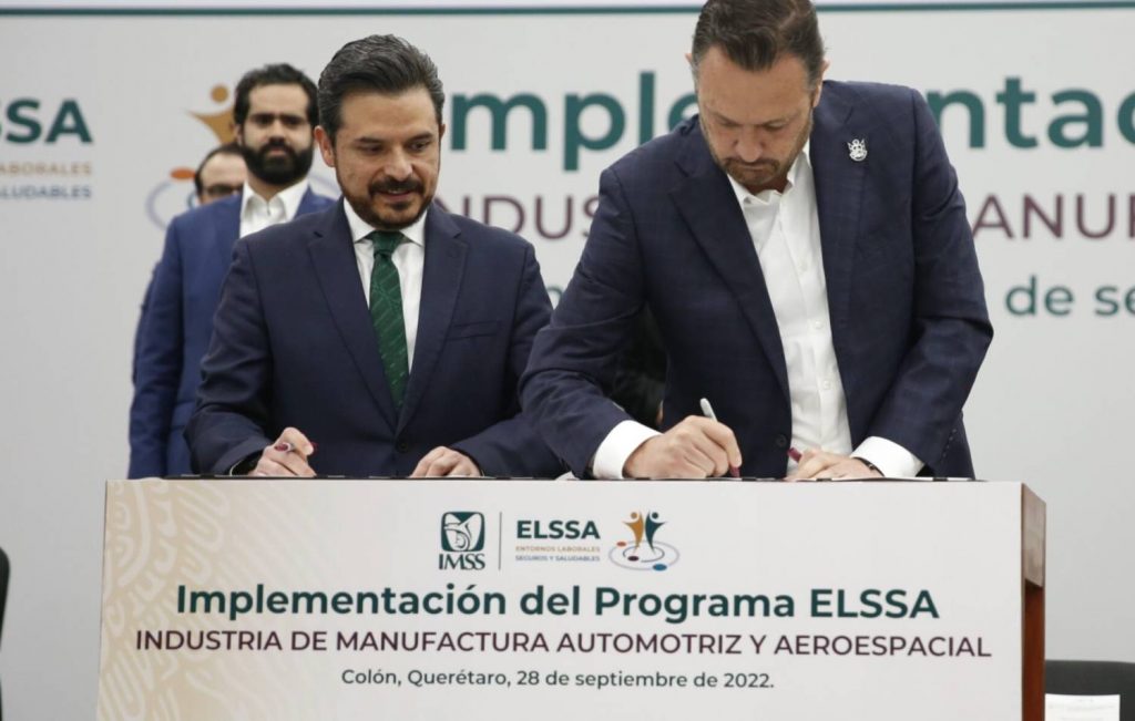 El gobernador de Querétaro, Mauricio Kuri González atestiguó la implementación de la Estrategia de Entornos Laborales, Seguros y Saludables (ELSSA) en la industria automotriz y aeroespacial, así como la firma del Acuerdo Nacional por la Salud y Bienestar de las Personas Trabajadoras en dichos sectores.