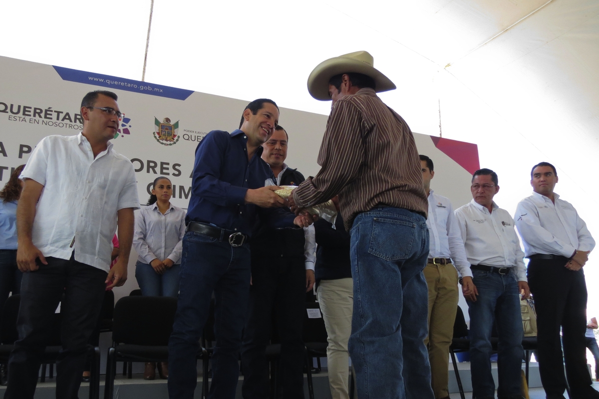 El gobernador del estado, Francisco Domínguez Servién, llevó a cabo en el municipio de Cadereyta la entrega de apoyos a cuatro mil 539 productores, de bajos recursos, afectados por las contingencias climatológicas registradas en Querétaro.