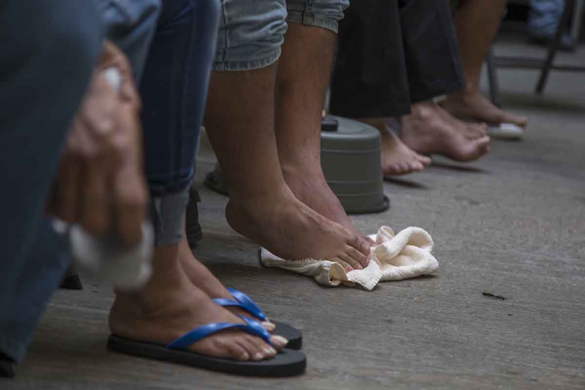 En la misa, el Obispo de Querétaro le lavó los pies a 12 personas privadas de su libertad, en representación a los 12 apóstoles.
