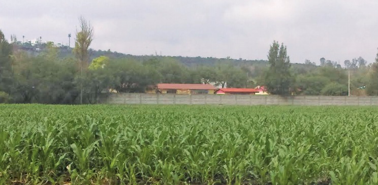 En un trecho de aproximadamente 400 metros, el agua se ha salido de los tubos de drenaje y se encuentra estancada en un canal de tierra a un costado de la vialidad; en ambos lados de la calle hay cultivos de maíz, por debajo circula la red de agua potable y a unos cuantos metros está un jardín de niños, lo que aumenta la precaución.