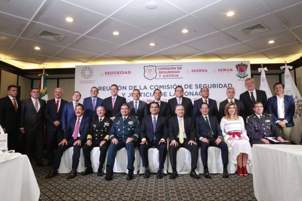 “En reunión de la Comisión de Seguridad y Justicia de CONAGO_oficial, #SSPCMexico, #SEDENAmx, #SEMARmx y Guardia Nacional; abordamos temas estatales y regionales”, escribió en sus redes sociales.
