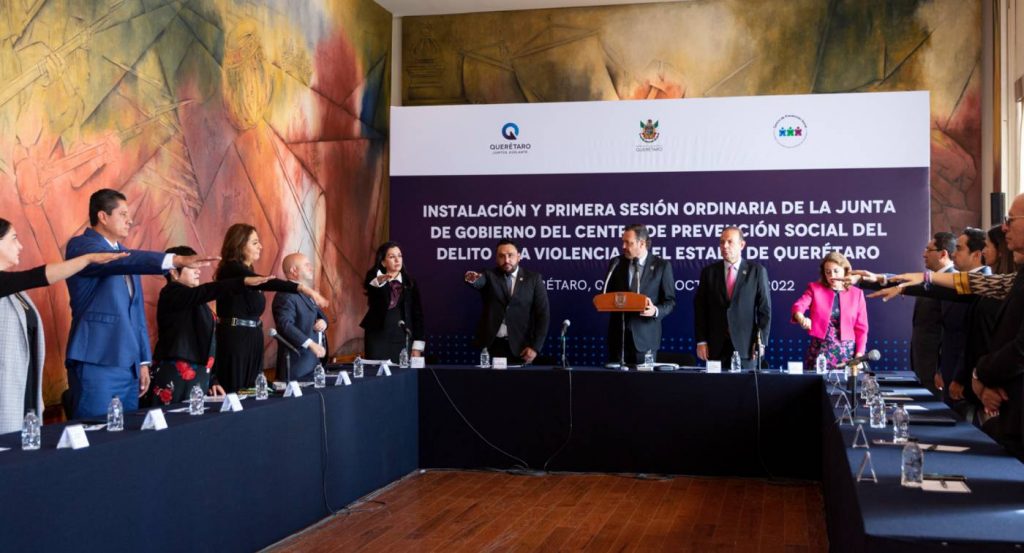 El gobernador de Querétaro, Mauricio Kuri González encabezó la instalación y primera sesión ordinaria de la Junta de Gobierno del Centro de Prevención del Delito y la Violencia, la cual tiene como finalidad fijar las políticas y lineamientos generales que definirán las acciones y proyectos de trabajo, así como para la administración y transparencia en la operación, con estricto apego a las disposiciones jurídicas aplicables.
