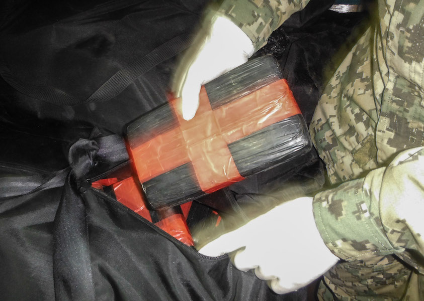 Aplicando la Ley Federal de Armas de Fuego y Explosivos, así como la Detección de Enervantes y/o Drogas Prohibidas por la Ley, personal militar detectó mediante Rayos “X”, un paquete que presentaba inconsistencias, por lo que se procedió a separarlo, marcando positivo con ayuda de un binomio canófilo.