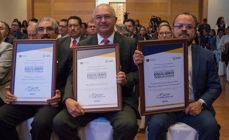 Autoridades capitalinas hicieron entrega de 39 reconocimientos a empresas que obtuvieron el distintivo municipal “Equilibrio Trabajo-Familia”, con el que se apoya la promoción de prácticas que fortalezcan la armonía entre la vida familiar y laboral de sus empleados; destacó Daniel Rodríguez Parada, titular de la Secretaría de Desarrollo Sostenible (Sedeso) en el municipio de Querétaro.