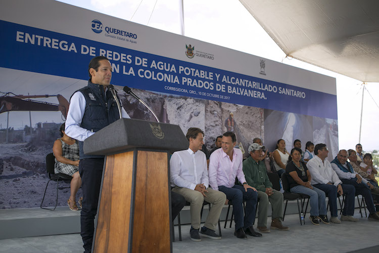 El gobernador del estado de Querétaro, Francisco Domínguez Servién entregó infraestructura de redes de agua potable y alcantarillado sanitario en la colonia Prados de Balvanera, perteneciente al municipio de Corregidora.