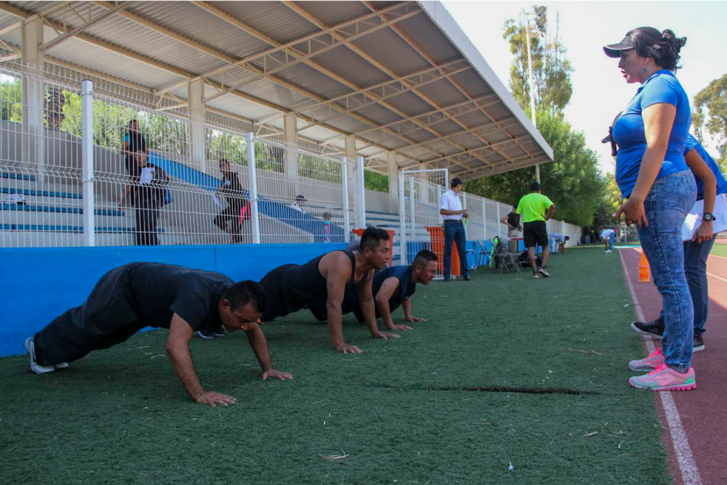 Posteriormente, pasaron a la segunda etapa en la que docentes y estudiantes de 5o y 7o semestre de la Licenciatura en Educación Física y Ciencias del Deporte (LEF), analizaron la resistencia, flexibilidad y fuerza de los elementos policiacos.