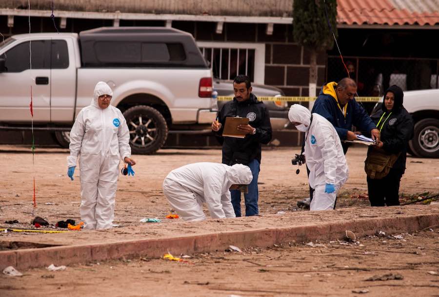 Dos horas después de la explosión, los elementos de la Secretaría de la Defensa Nacional (Sedena), Policía Investigadora del Delito y del Servicio Médico Forense (Semefo) seguían recogiendo testimonios y los restos que quedaron dispersos en el atrio de la iglesia y la calle.