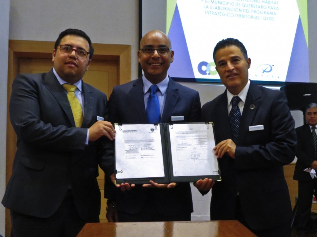 Se llevó a cabo la firma del convenio de colaboración internacional entre ONU-Habitat y el municipio de Querétaro con el objetivo de sumar esfuerzos para la elaboración del programa estratégico territorial Q500, que pretende crear una estrategia de crecimiento de la capital a largo plazo.