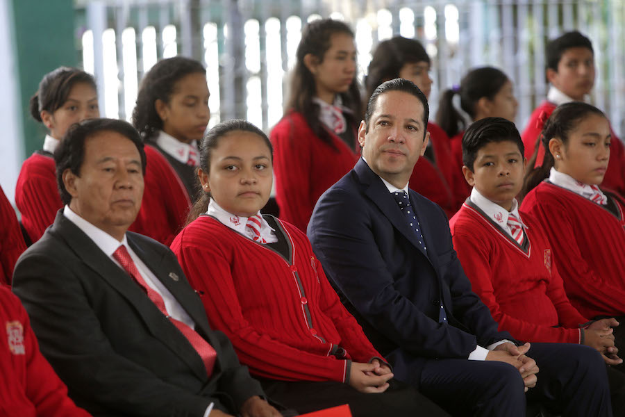 Durante la ceremonia de Honores a la Bandera, el gobernador detalló que el Gimnasio-Auditorio contará con sanitarios, cabina de sonido, vestíbulo, foro, gradas, cancha de usos múltiples, gimnasio y explanada; así como áreas diseñadas para personas con discapacidad: “esta nueva infraestructura favorecerá su formación deportiva y cultural, los acercará a una vida más sana y fortalecerá su comunidad escolar”.