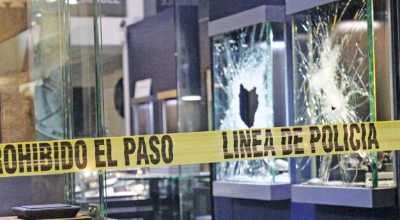 A la joyería Bo&Co ingresaron sujetos armados y con mazos, con lo que dañaron los cristales de las vitrinas, donde se ofertan los productos del comercio.