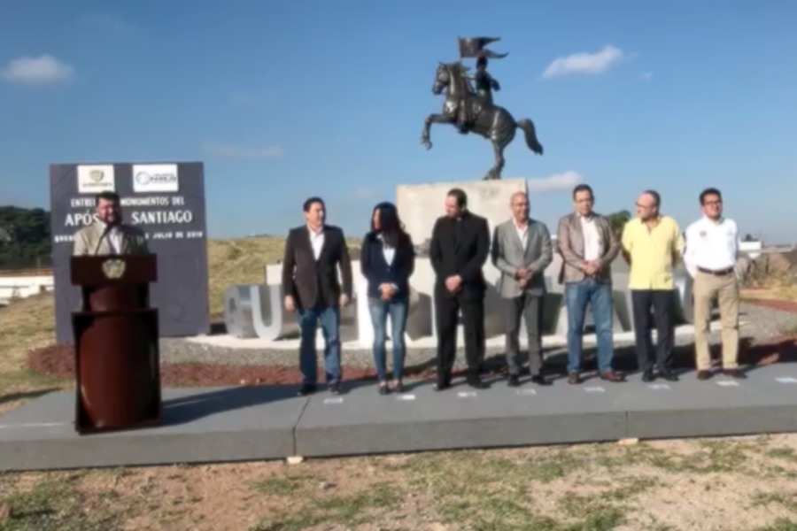 “La imagen de Apóstol Santiago es un símbolo para Querétaro y un punto de partida para seguir aumentando la calidad de vida de nuestra ciudad, porque solo un pueblo que sabe de dónde viene, tiene la capacidad para saber a dónde va”, expresó Marcos Aguilar, durante la entrega de esta escultura realizada por el artista mexicano Miguel Michel.