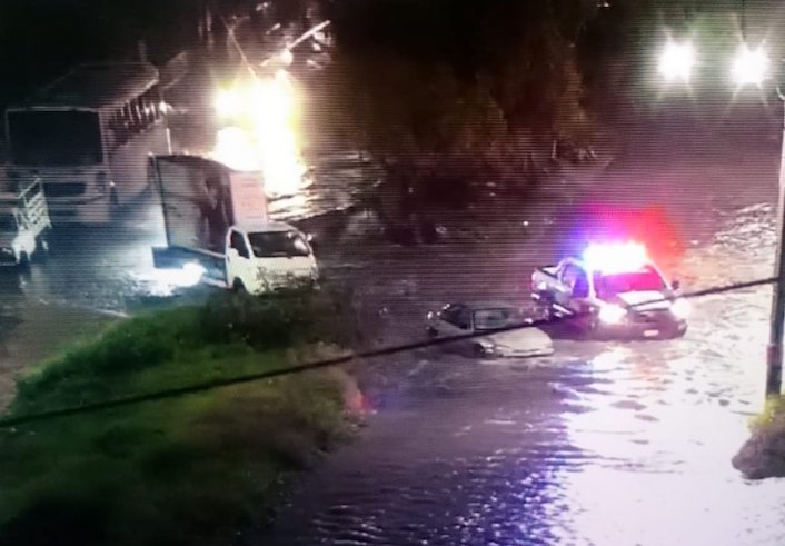 El fuerte aguacero de anoche y la corriente que se formó arrastraron al automovilista que pasaba por la zona.