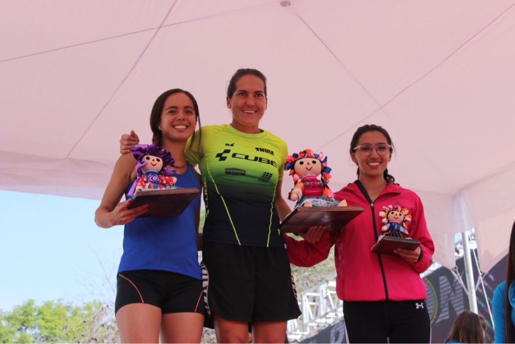 Irene Miroslava Olmos, originaria del Estado de México, fue premiada por su primer lugar en terminar el recorrido de la misma distancia, en tres horas con 16 minutos, en la categoría femenil.