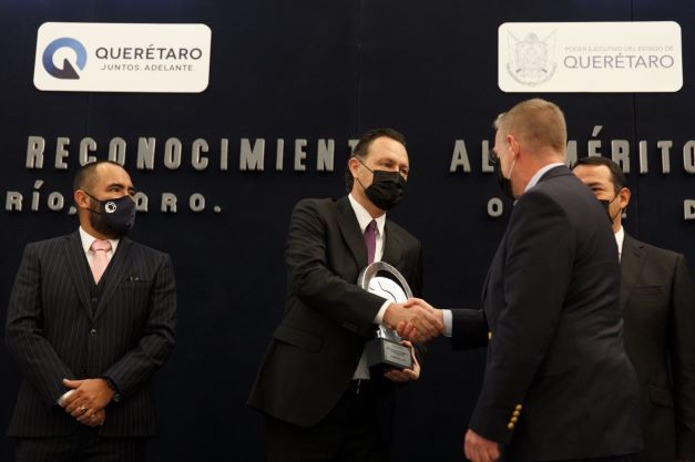 El gobernador también entregó el Premio al Mérito Empresarial y Académico, el máximo reconocimiento que se entrega anualmente, a la empresa IMBERA, primera compañía acreditada en el estado, desde hace 17 años.