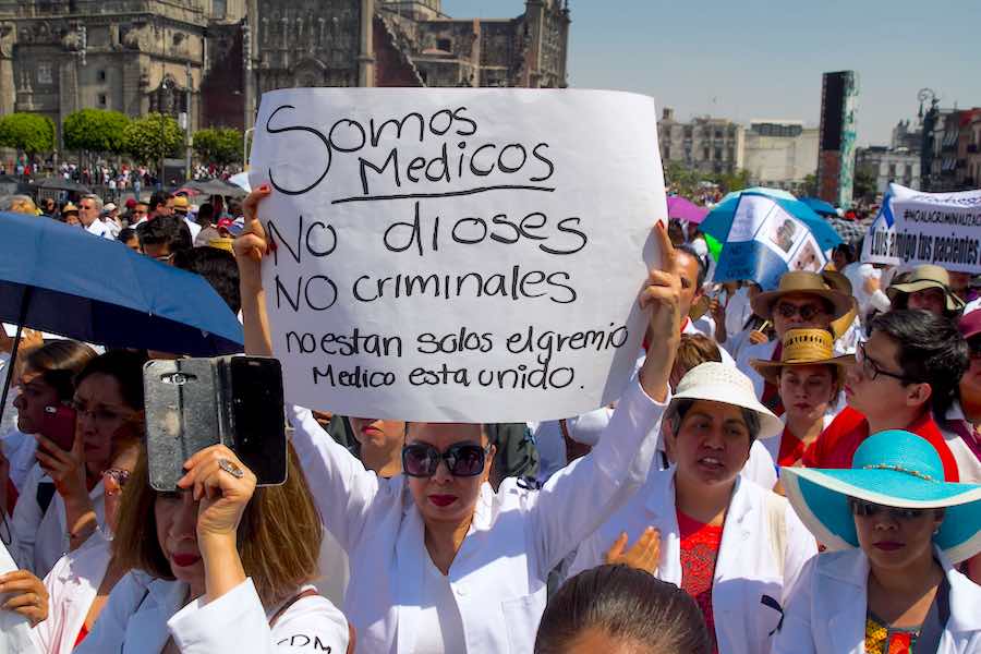 Un grupo de médicos se manifestó a las afueras del Hospital del Niño y la Mujer para exigir modificaciones al Código Penal respecto a la responsabilidad profesional de este sector, luego de que el traumatólogo Luis Alberto Pérez Méndez fuera acusado de homicidio doloso en el estado de Oaxaca.