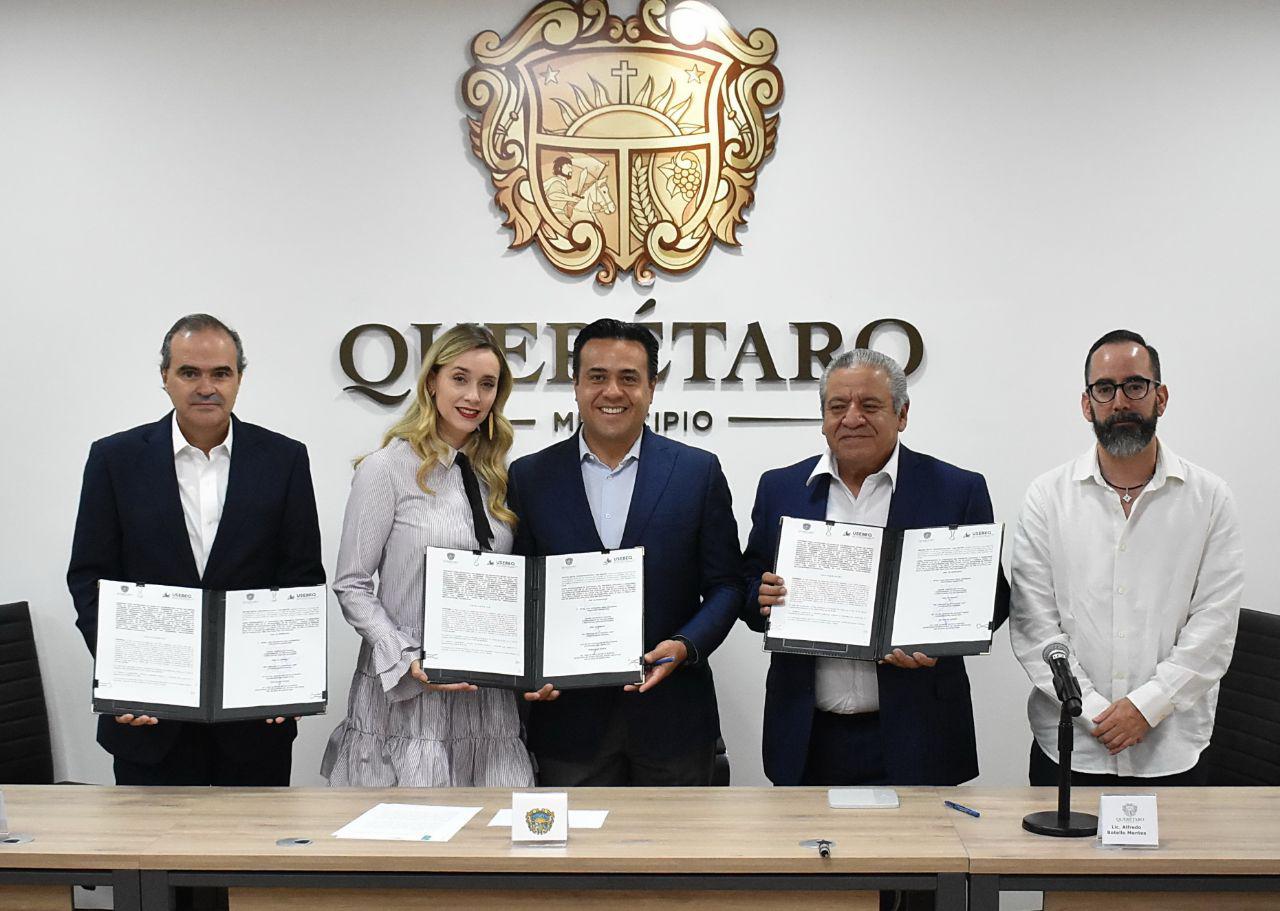 Se firmó un convenio de colaboración entre el Municipio de Querétaro y la Unidad de Servicios para la Educación Básica de Querétaro (USEBEQ), para que en el marco del programa “Querétaro por la Paz”, se lleven a las escuelas estrategias de promoción de la tolerancia y diálogo para la solución de conflictos y fortalecer el tejido social.